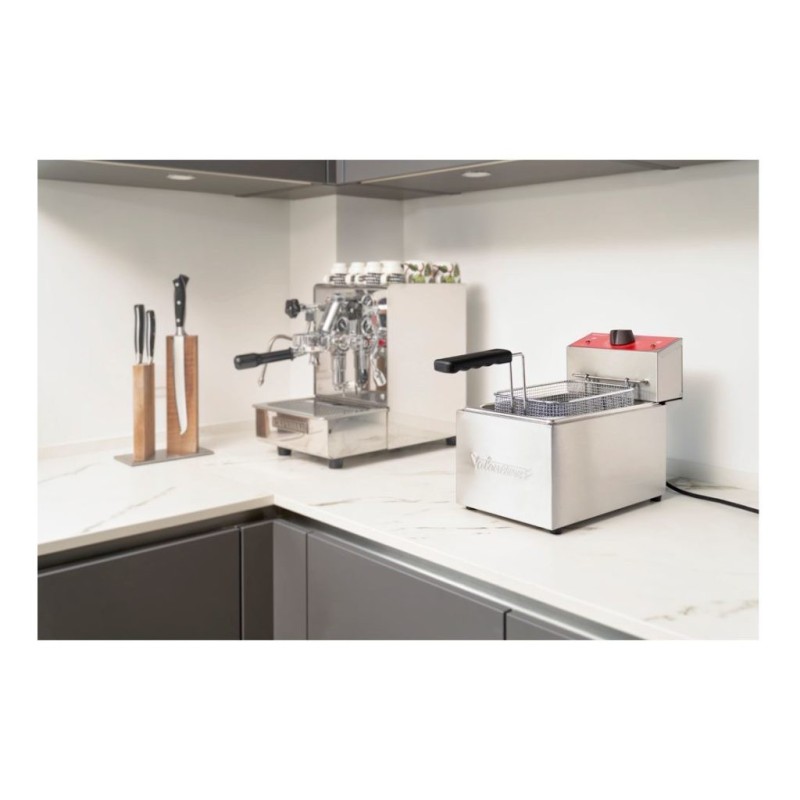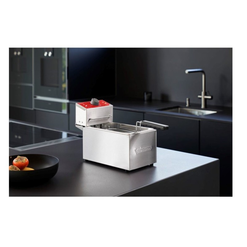 Como hostelero, sabes que en una freidora pequeña el mayor riesgo es que pierda temperatura rápido. La Valentine TF3 destaca precisamente por su fiabilidad y su capacidad de recuperación pese a su tamaño compacto. Es una máquina robusta que no falla y que, al cerrar el servicio, es extremadamente fácil de limpiar porque se desmonta por completo. Es la opción perfecta para producciones pequeñas que exigen un acabado de alta cocina.