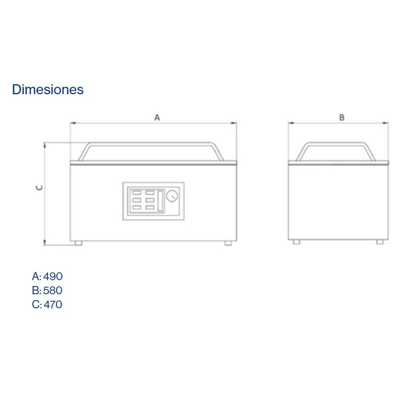 El corazón de la máquina es su potente Bomba BUSCH de 20 m³/h, una solución de alta gama que garantiza ciclos de vacío ultrarrápidos (10 a 30 segundos) y un rendimiento óptimo para el trabajo continuo. Las dimensiones útiles de la cámara son de 430 x 450 x 180 mm. El sellado se realiza mediante una barra de 420 mm con doble soldadura, asegurando el cierre más fiable. El equipo se entrega con gruesos de polietileno para facilitar la colocación y acelerar el ciclo de envasado.