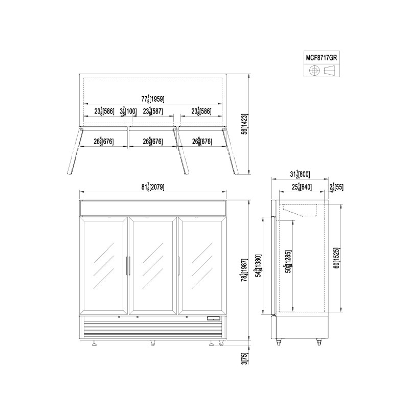 1 x Congelador Expositor Atosa de 3 Puertas de Cristal (Referencia MCF8713-GR).