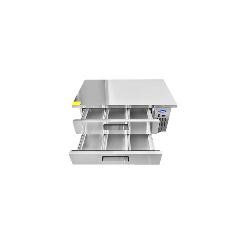 🚀 Características Destacadas Construida totalmente en acero inoxidable de grado profesional, garantiza una durabilidad extrema y facilidad de higienización. Dispone de dos cajones refrigerados con guías de alta resistencia y sellos magnéticos. Su sistema de refrigeración ventilada mantiene un rango de -2ºC a +8ºC, controlado por un termostato digital de alta gama. Además, destaca por su eficiencia energética (Clase B) y su capacidad para trabajar en condiciones extremas (Clase Climática 5).