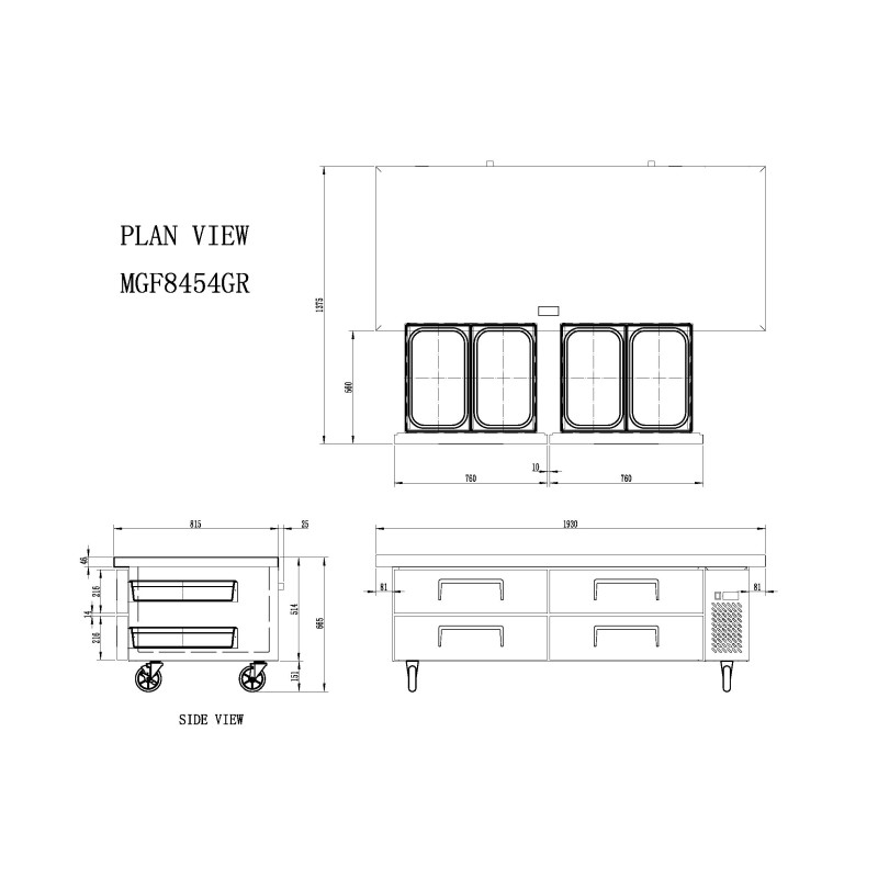 Mesa de Soporte Refrigerada 193cm 4 Cajones