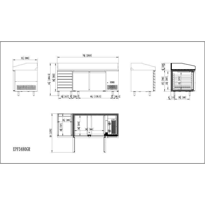 🌟 Descripción General Esta mesa de Atosa (referencia EPF3480-GR) es una herramienta de alto rendimiento diseñada específicamente para optimizar el flujo de trabajo en pizzerías. Con una longitud de 201 cm, destaca por su configuración única que combina 2 puertas batientes con un bloque lateral de 7 cajones neutros. Estos cajones son perfectos para el reposo de las bolas de masa, manteniéndolas a temperatura ambiente pero protegidas, mientras que el compartimento refrigerado conserva los ingredientes frescos. Su gran encimera de mármol proporciona la superficie fría ideal para estirar la masa sin que se pegue.