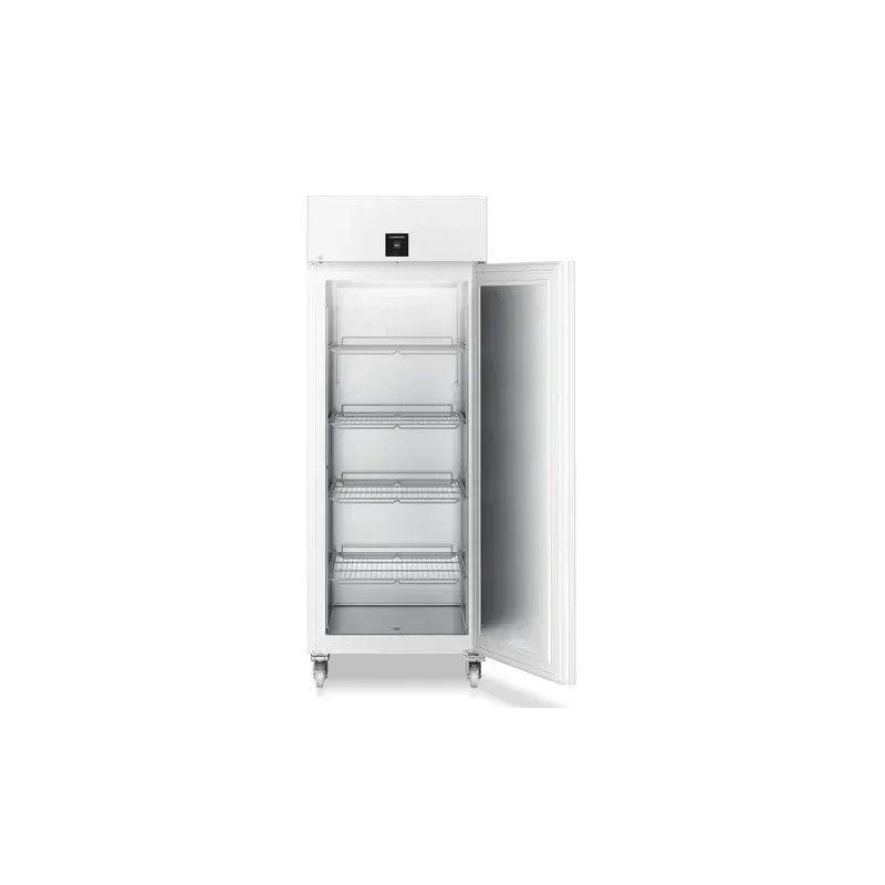 Cada detalle está pensado para el uso intensivo: cuba interior de acero inoxidable AISI 304 indeformable, guías embutidas para una limpieza higiénica y una válvula de compensación de presión que permite abrir la puerta repetidamente sin esfuerzo. La seguridad está garantizada mediante alarmas por desviación de temperatura, puerta abierta y fallo de red, con opción de conexión a sistemas de alarma centralizados.