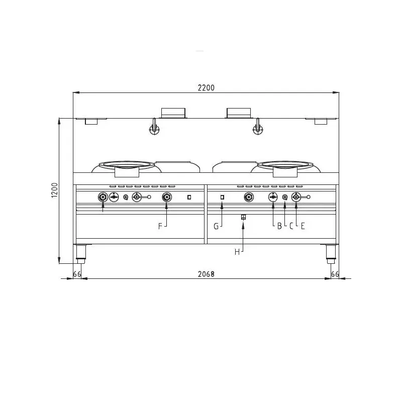 Cocina WOK profesional de 2 quemadores | Virtus NGKB22125