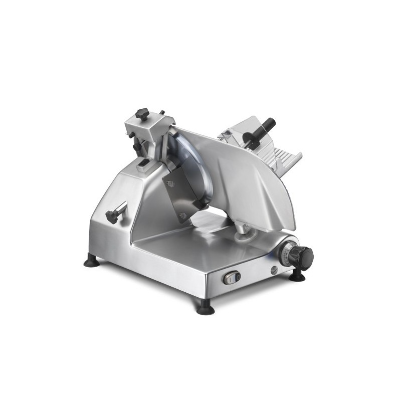 👨🍳 Nota del experto: El dato técnico crucial de la 300 GXE KI es su transmisión por engranajes. A diferencia de los modelos por correa, este sistema no pierde potencia bajo presión; es "indestructible" ante el corte de productos con mucha resistencia como el queso curado. Es la inversión perfecta para carnicerías y pequeños restaurantes que buscan la fiabilidad de una máquina de gran formato concentrada en una base de solo 540 x 400 mm.