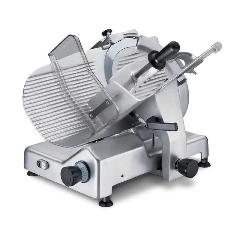 ⚙️ Transmisión por Engranajes: Olvídate del mantenimiento y sustitución de correas. Este sistema asegura una tracción constante, ideal para cortar quesos curados o embutidos muy compactos sin que la cuchilla se frene.